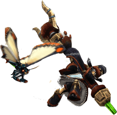 猟虫を放ち、モンスターから強化エキスを採取して回収する事で、ハンター自身を強化しながら攻撃を行う近距離武器。