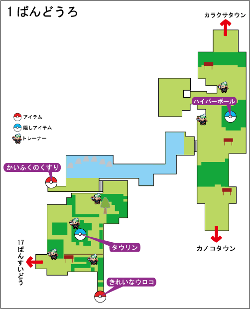 | きれいなウロコ | 17ばんすいどう入口手前を下に行く | 拾う(要:なみのり) |