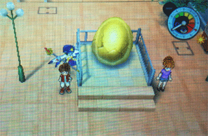 団々坂のお寺の周りの道をランニングしている「お兄さん」に話しかけると さくら中央シティの駅の前にある「金の卵」をさすれるようになります。